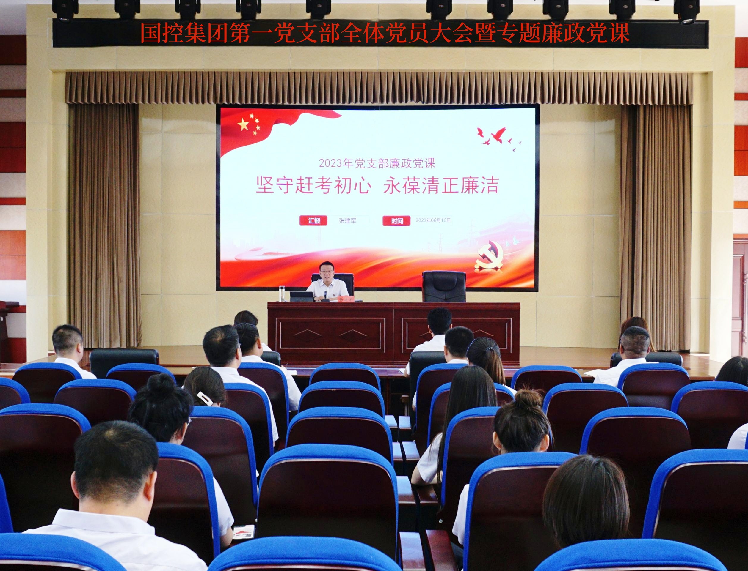 6月16日上午,國控集團(tuán)第一黨支部召開全體黨員大會暨專題廉政黨課。集團(tuán)公司黨委書記、董事長張建軍出席會議并作廉政黨課。黨委委員、紀(jì)委書記房寶軒主持會議并作廉政黨課,一支部全體黨員參加了會議。